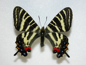 | 外的な因子や、遺伝的または、遺伝子の異常などにより、翅の変形、色素の欠落・黒化、斑紋の乱れなど、いろいろな異常型が現れます。時には頭部だけが幼虫のままの姿で成虫(蝶)になることさえあります。 |