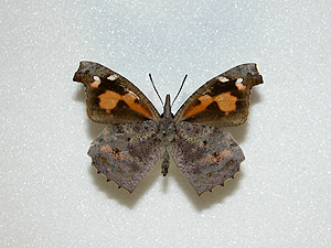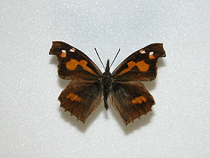 | 鼻が突き出ているわけではありませんが、下唇髭(かしんひげ)という部分が天狗のように見えることからこの名がついています。農業センターや天白公園など、雑木林のあるところならたいていの場所で見ることが出来る蝶です。ただ初夏に羽化するのですが少し経つと夏眠に入り、秋もそれほど姿を見せずにそのまま冬眠に入ってしまいます。そして春一番に活動を始めとともに産卵を行い短期間でまた成虫があらわれ、成虫期間の最も長い蝶の一つです。 |