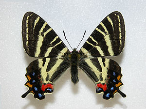 | ギフチョウは地域変異の大きい種ですが一般の方が見てもみんな同じように見えるかもしれません。 ここでは、遺伝的にその地だけに稀に現れる特殊なイエローバンド型を紹介します。その他、イエローテール・マルギフなどといろいろな型があります。 |